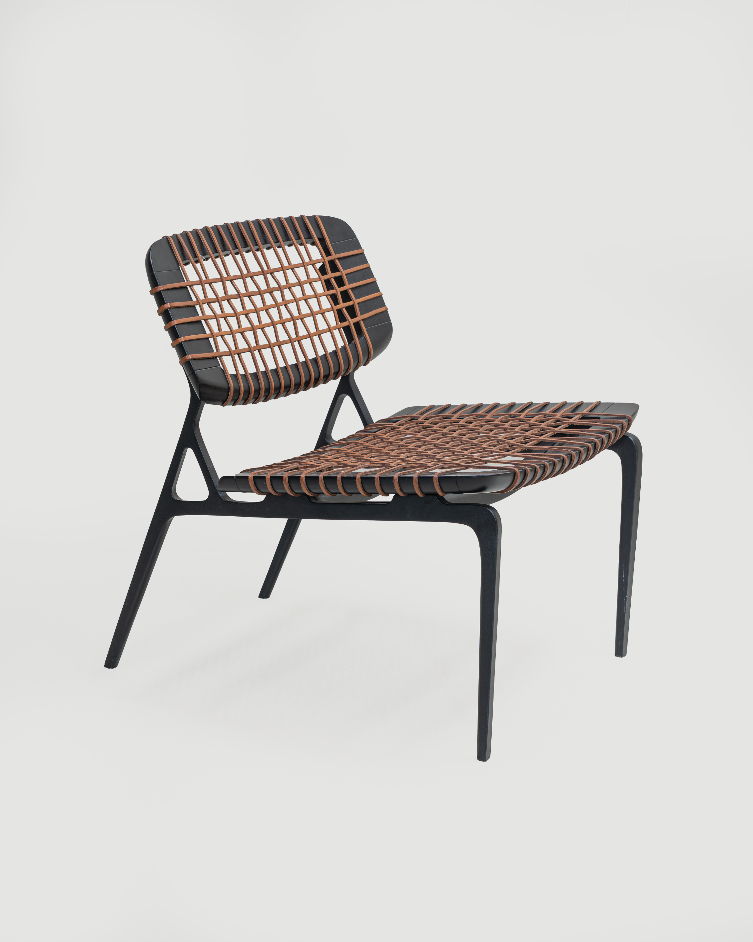 ‘Asanas’ are yoga poses where this modern chair gets its name. The chair has a wide and deep seat to sit up optionally in the ‘padmasana’ or ‘lotus pose’. The frame is cast aluminum with back chair legs extending out to orient the backrest.